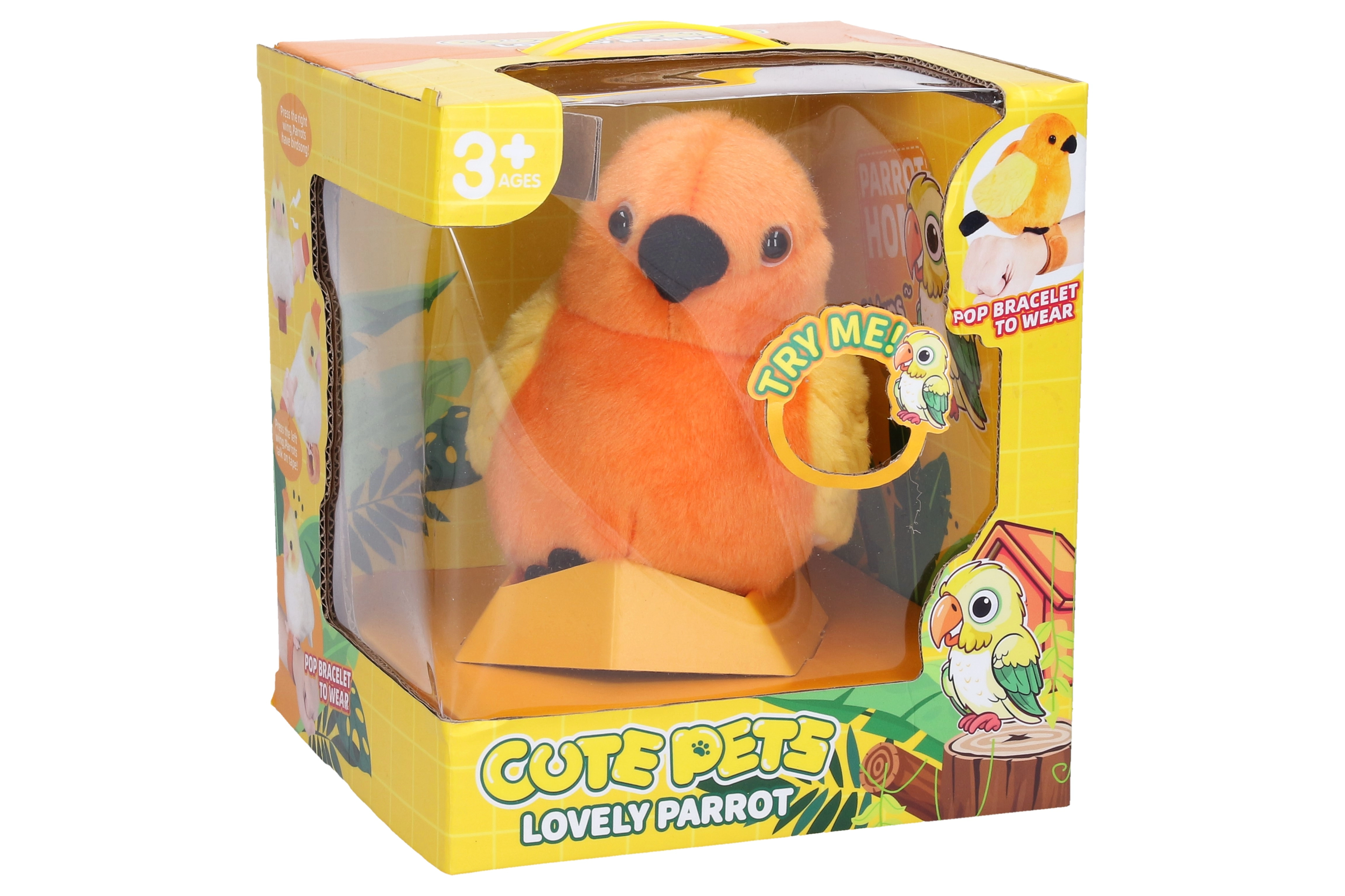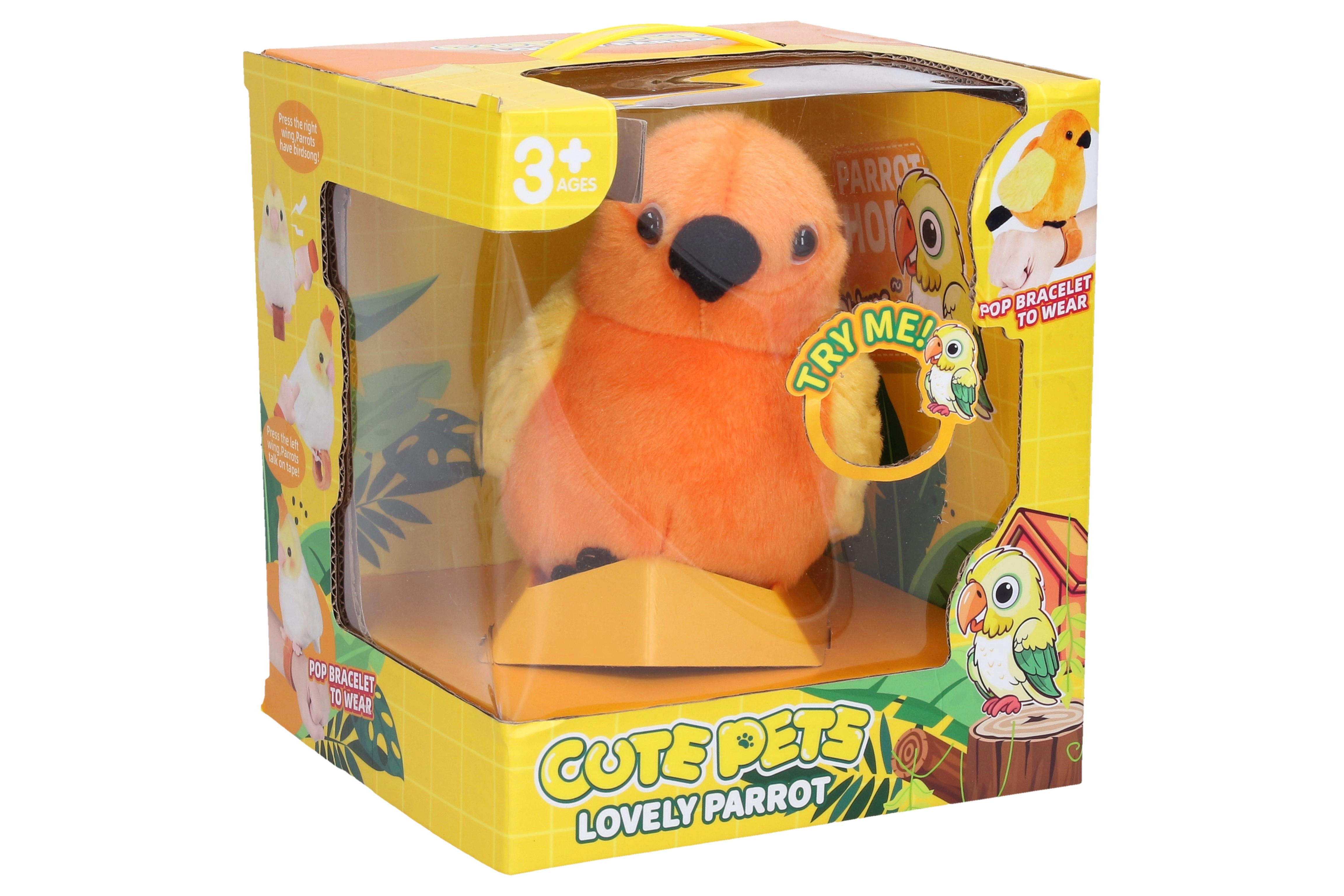 Slatka ptičica koja ponavlja donosi sate smijeha i igre. Zahvaljujući kompaktnoj veličini od 17 cm odlično pristaje dječjoj ruci i postaje omiljeni suputnik. Na desnom krilu pokrećete ptičji pjev, a na lijevom krilu ptičica ponavlja sve što kažete.