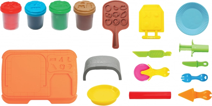 Kreativni set s peći za pizzu, kalupićima i 4×56 g modelirajuće mase. Razvija finu motoriku i maštu. Uputa za miješanje boja na pakiranju.