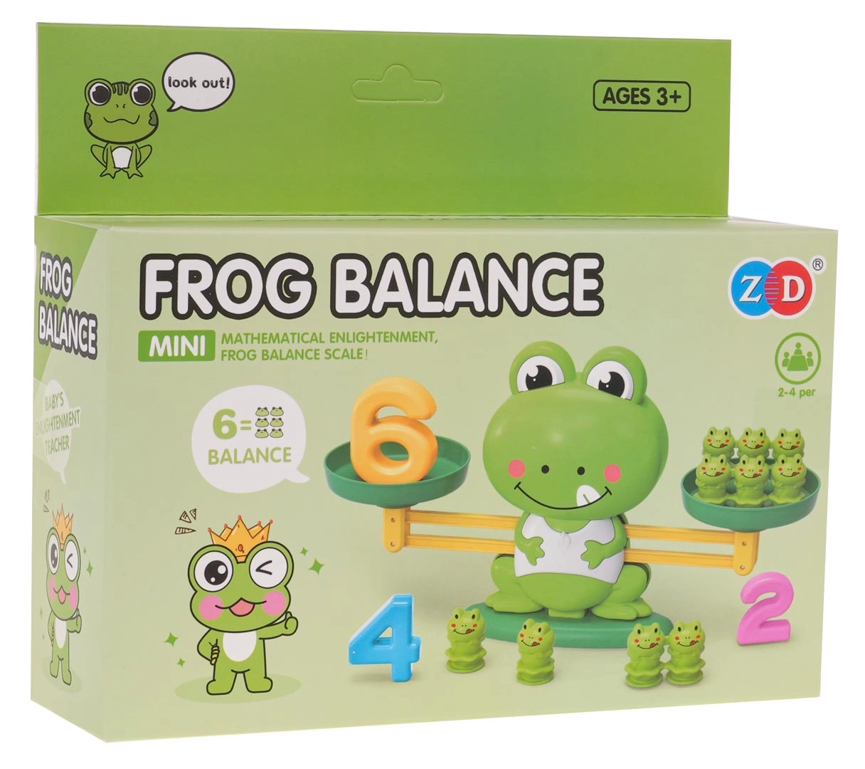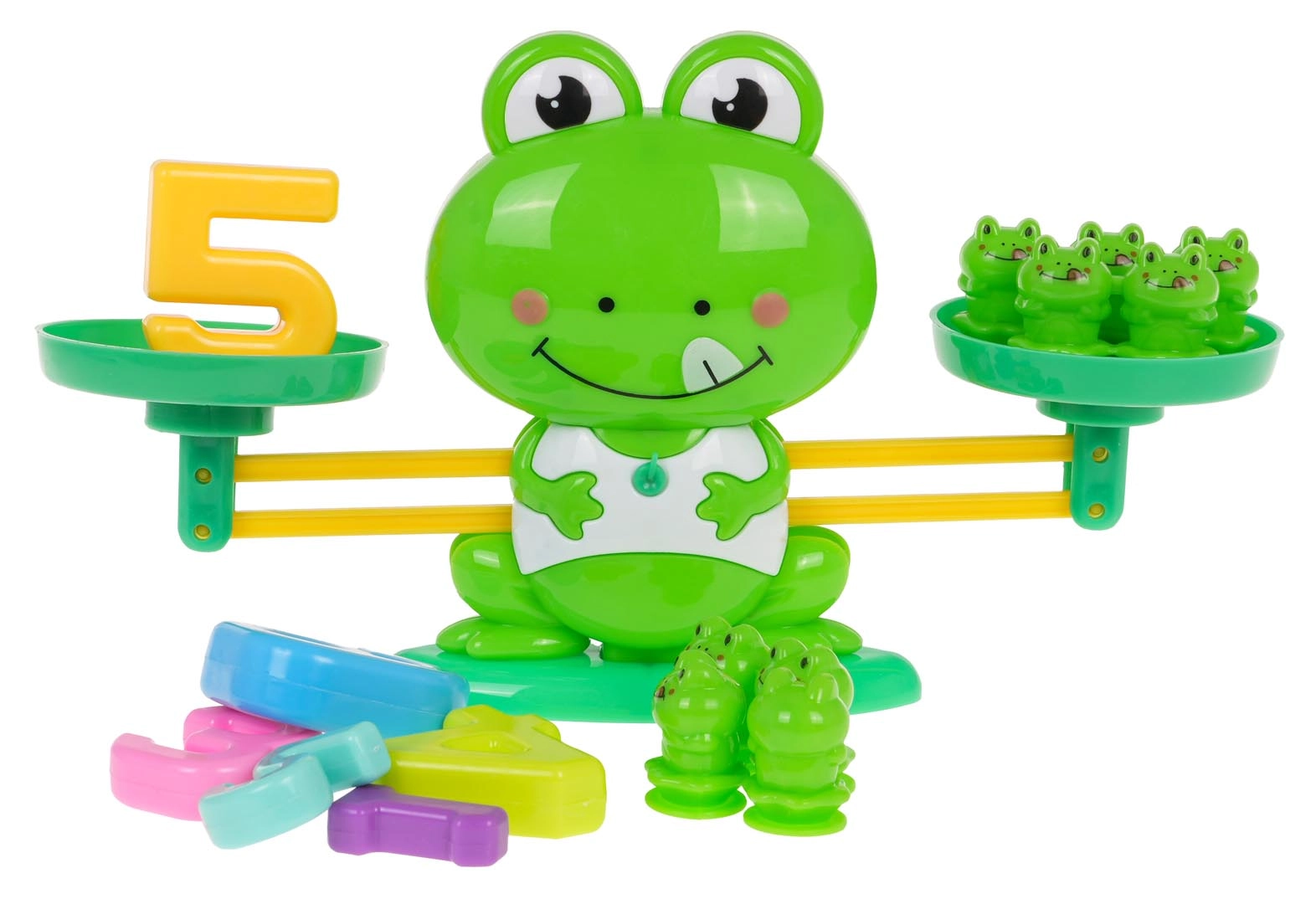 Ova vještinska igra kombinira učenje i igru. Djeca stavljaju na jednu zdjelicu broj, a na drugu odgovarajući broj žabica kako bi postigli ravnotežu. Prirodno tako shvaćaju osnove matematike i fizike – zbrajanje, oduzimanje i uspoređivanje težine.