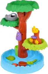 Prelijte vodu u gornje katove stabla i promatrajte kako se slijeva niz pojedine razine, pokreće zupčanike i završava u donjem spremniku. Zahvaljujući živim bojama i promišljenom dizajnu, djeca prirodno razvijaju finu motoriku, logiku i maštu – bilo da se igraju kod kuće u vrtu ili na plaži.