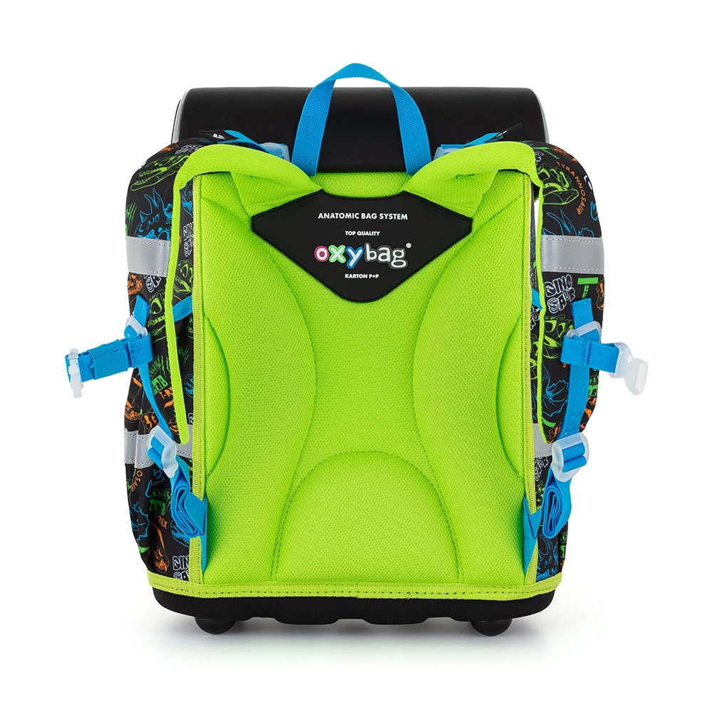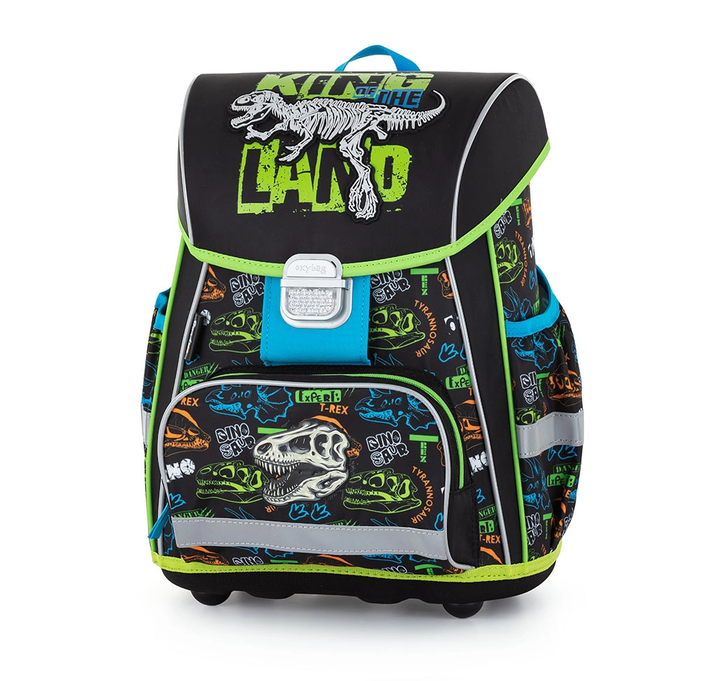 Aktovka: Školska aktovka iz linije Premium anatomski je oblikovana i osigurava pravilno prijanjanje na leđima. Ojačana leđa i unutarnja potpora održavaju stalan oblik ruksaka. Podstava je od ugodnog prozračnog materijala, široke mekane naramenice dizajnirane su tako da savršeno prianjaju i ravnomjerno raspoređuju opterećenje na dječjim ramenima. Aktovka se sastoji od jedne prostrane komore u koju se udobno smjeste svi školski pribori za djecu u 1. i 2. razredu. Dno ruksaka je od čvrstog materijala, čime štiti sadržaj od prevrtanja i rasipanja. Zatvaranje je na sigurnosnu kopču. Prednji džepići namijenjeni su za užinu, ne nedostaje niz reflektirajućih elemenata zahvaljujući kojima je aktovka vidljivija. Obujam: 28 l. Nosivost: 8 kg. Vrećica: Školska vrećica za tjelesni izrađena od kvalitetnog materijala. Vrećica se zatvara zatezanjem uzica. Prikladna i za školu i za sport te druge aktivnosti u slobodno vrijeme djece. Pernica: Jednokatna školska pernica s dva preklopa bez punjenja. Gumene petlje za pričvršćivanje pribora za pisanje. Na unutarnjem preklopu nalazi se prozirna folija za raspored sati.
