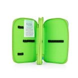 Ugodno korištenje osigurava kvalitetan patentni zatvarač s velikim privjescima za jednostavno rukovanje i prozirni džep za tjedni raspored u jednom sloju. Praktičnih 25 gumiranih držača sigurno drži pribor za pisanje na svom mjestu.
