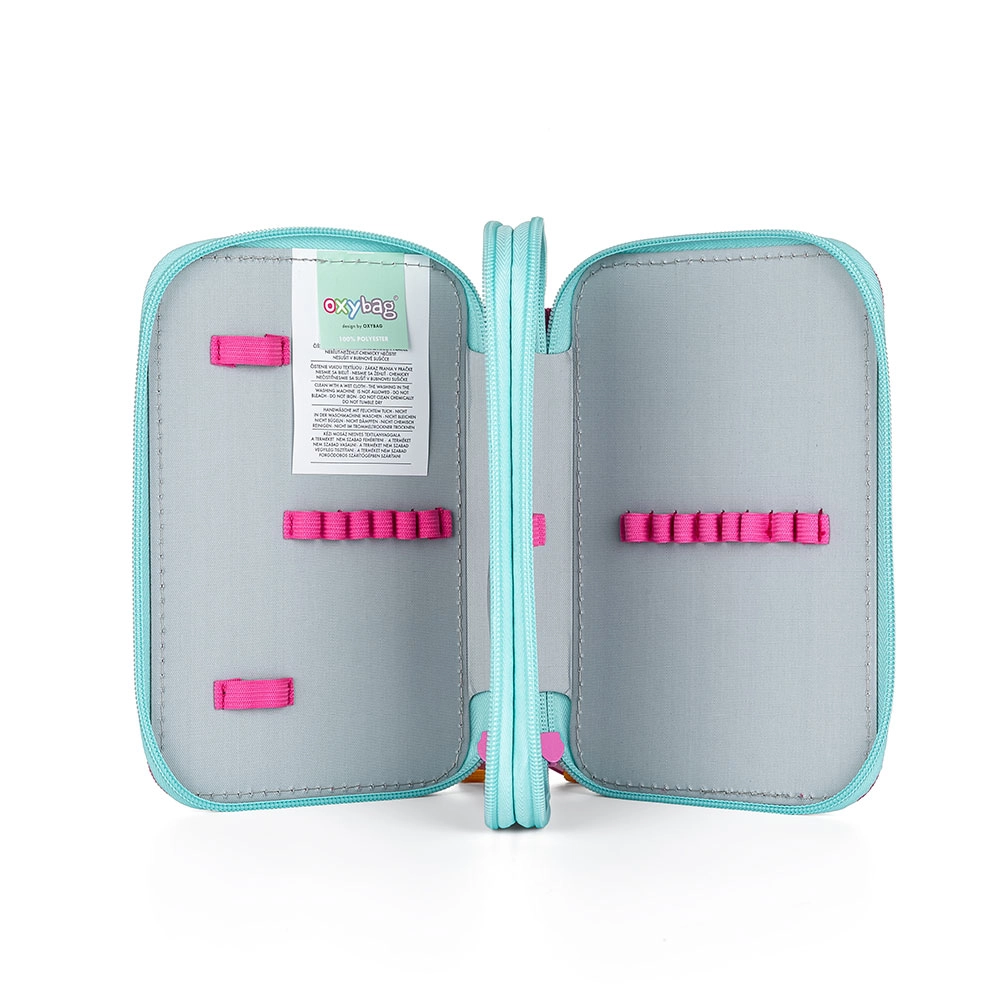 Zahvaljujući promišljenom unutarnjem rasporedu s 25 držača, lako ćete posložiti olovke, bojice, gumicu i ravnalo. Veliki privjesci na patentnom zatvaraču omogućuju udobno otvaranje i mlađoj djeci, a prozirni džep za raspored pomaže u organizaciji školskog tjedna.