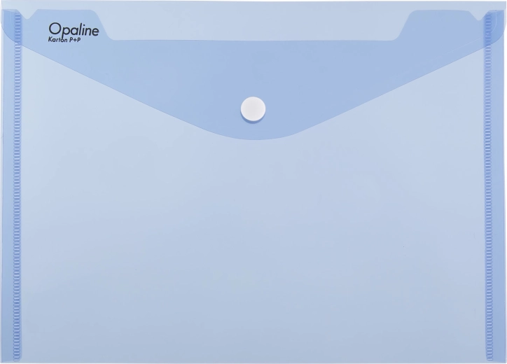 Praktična kovertica OPALINE formata A4 čuva vaše dokumente na sigurnom. Izdržljiv polipropilen 180 µm, pouzdano zatvaranje na druk i plava boja za lako razlikovanje. Isporučuje se u pakiranju od 5 komada.
