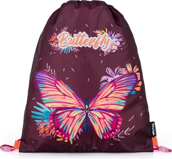 Praktična vrećica za tjelesni s motivom leptira, idealna za školu i izvanškolske aktivnosti. Nudi zatvaranje povlačenjem uzica, mogućnost nošenja na leđima ili pričvršćivanja na školski ruksak. Lagani i izdržljivi materijal 100% poliester jednostavan je za održavanje.