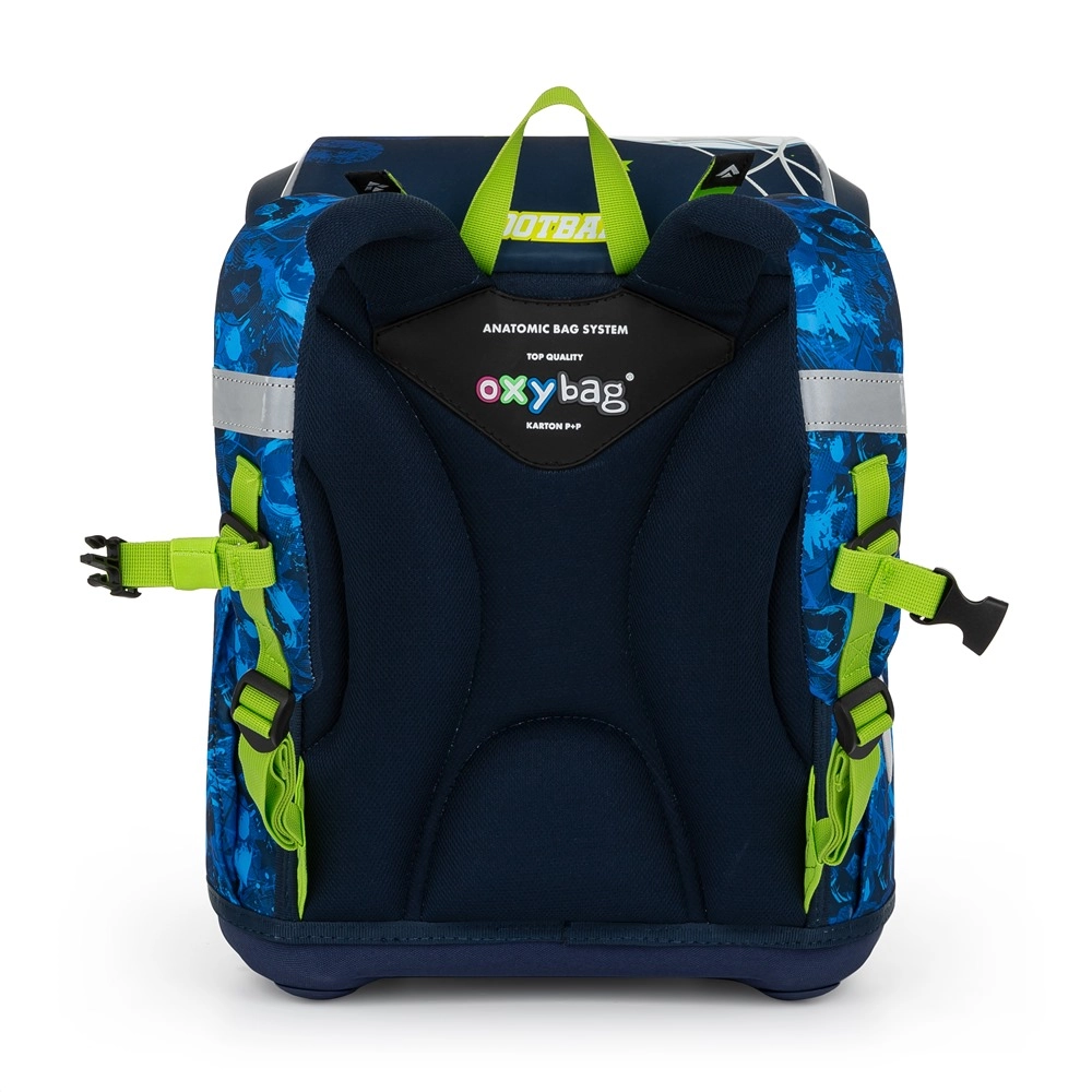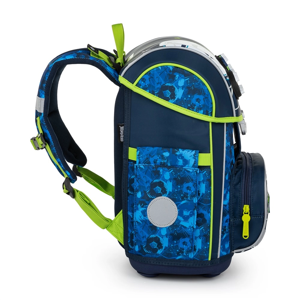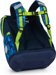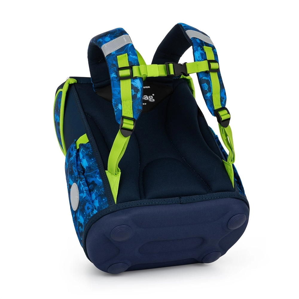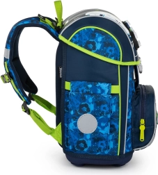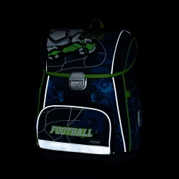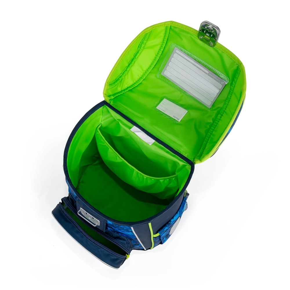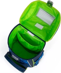 Glavna komora prima sve školske potrepštine i zadržava oblik zahvaljujući unutarnjem ojačanju. Prednji džep idealan je za užinu i sitnice, sigurnost povećava metalna kopča s ugrađenim reflektirajućim elementom i reflektirajući detalji po rubovima. Čvrsto dno štiti sadržaj od prevrtanja i rasipanja, a dodatne kukice olakšavaju pričvršćivanje naramenica.