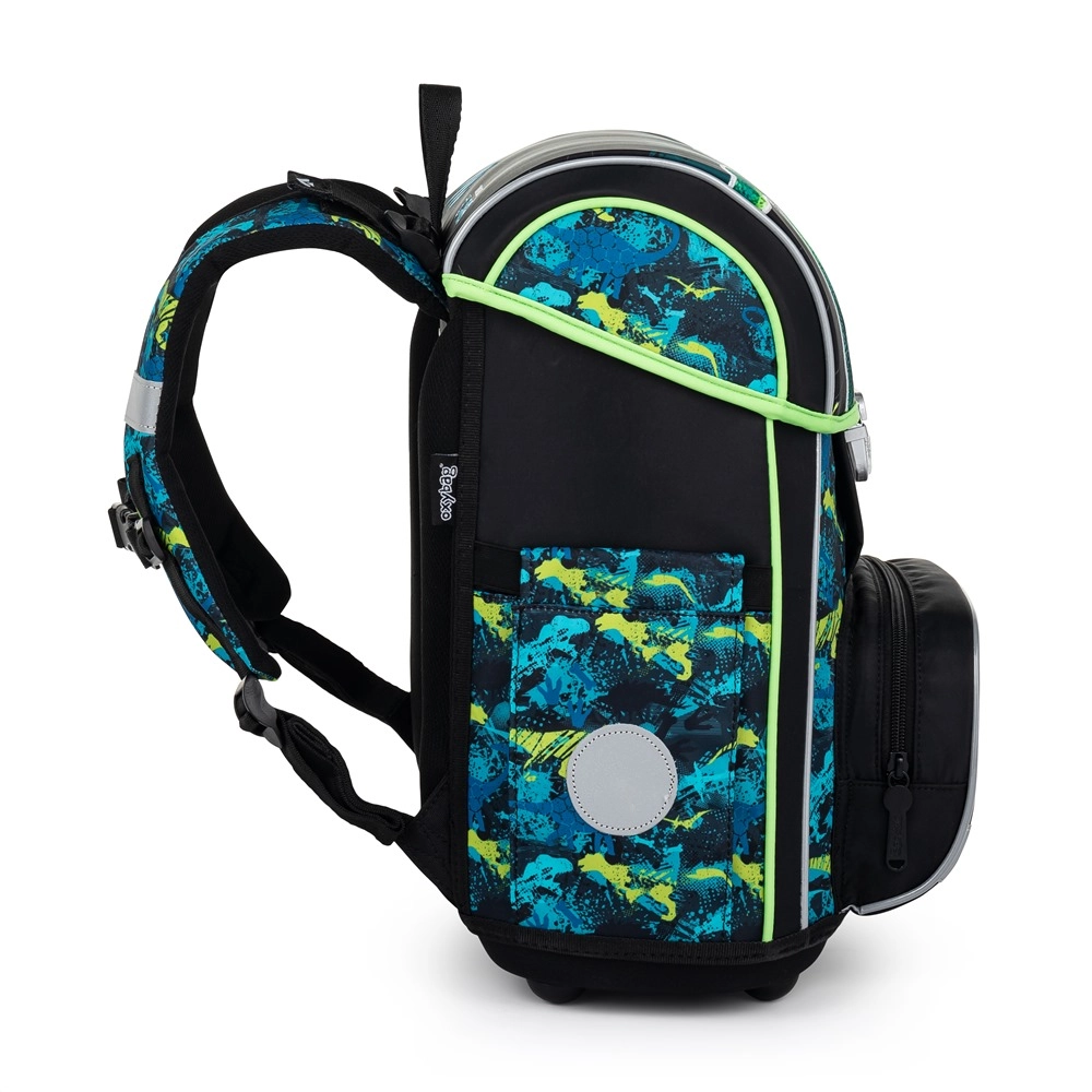 Školska aktovka iz linije Premium anatomski je oblikovana i osigurava pravilno prijanjanje na leđa. Ojačana leđa i unutarnja struktura održavaju stalan oblik ruksaka. Podstava je od ugodnog prozračnog materijala, široke mekane naramenice dizajnirane su tako da savršeno prianjaju i ravnomjerno raspoređuju opterećenje na djetetova ramena. Aktovka se sastoji od jedne prostrane komore u koju se udobno smjeste svi školski pribori za djecu u 1. i 2. razredu. Dno ruksaka je od čvrstog materijala, čime štiti sadržaj od prevrtanja i prosipanja. Zatvaranje je na sigurnosnu kopču. Prednji džepić je namijenjen za užinu, a ne nedostaje ni niz reflektirajućih elemenata zahvaljujući kojima je aktovka vidljivija. Volumen: 28 l. Nosivost: 8 kg.