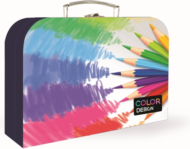 Praktični laminirani kovčeg s motivom bojica za školu i slobodno vrijeme, idealan za likovni pribor i bilježnice u formatu A4. Izdržljiva laminirana površina, sigurno metalno zatvaranje i čvrsti metalni zakovci osiguravaju dug vijek trajanja. Kompaktne dimenzije 340 × 230 × 100 mm i ugodna masa 0,495 kg za lako prenošenje.