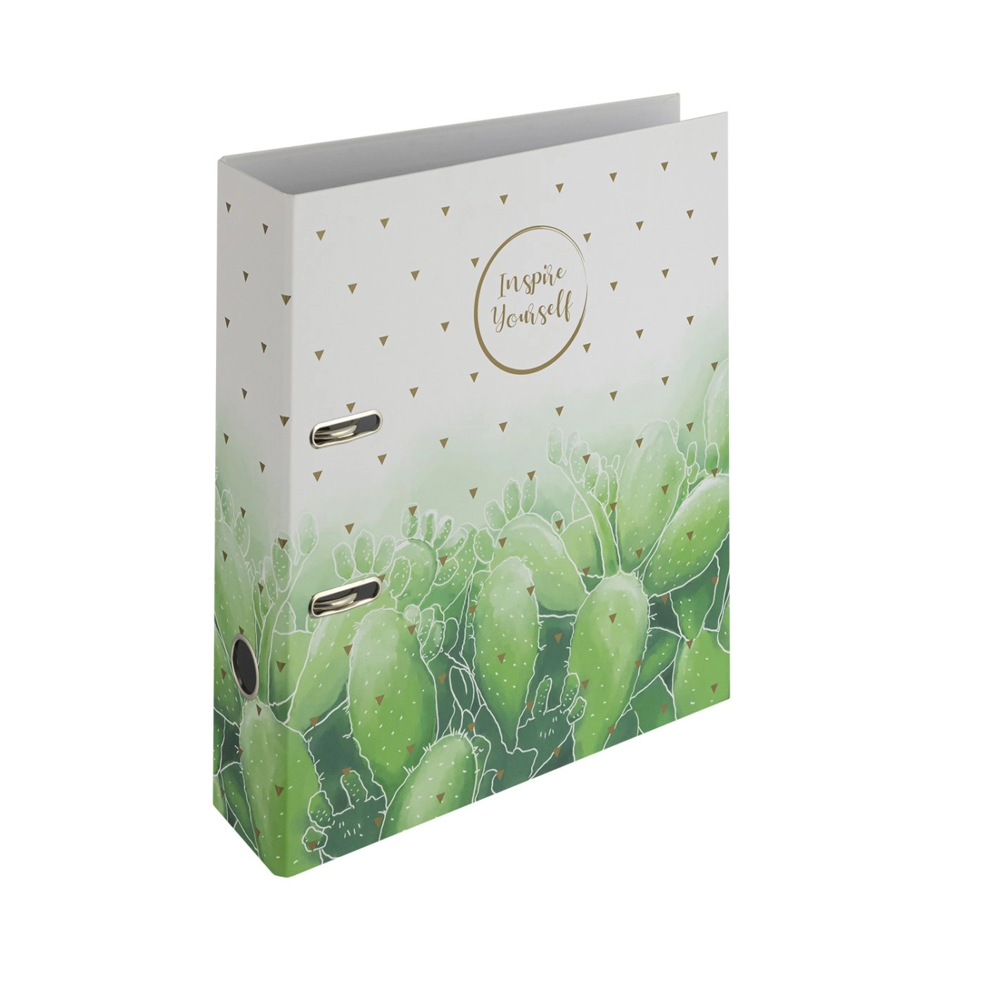 Ovaj elegantni polužni registrator idealan je za svakodnevno razvrstavanje i arhiviranje dokumenata u uredu i kod kuće. Laminirana površina s motivom Romantic Kaktus izdržljiva je i jednostavna za održavanje, dok robusna poluga pouzdano drži dokumente na mjestu.