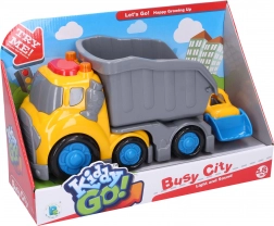 Uz ovaj Kiddy set građevinskih vozila djeca će uživati u satima kreativne zabave. Kiperić s prikolicom ima pokretna vrata i efekte aktivirane gumbom na krovu kabine, dok je buldožer opremljen pokretnom žlicom za utovar i istovar. Zahvaljujući slobodnim kotačima vozila se lako upravljaju i najmlađim vozačima.