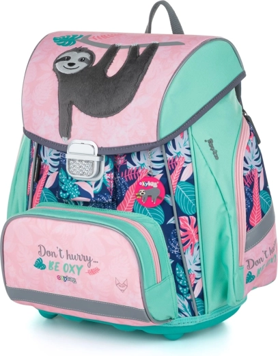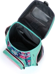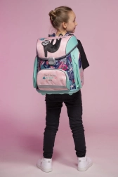 Ruksak sadrži glavnu prostranu komoru koja može smjestiti sve potrebne rekvizite za prvi i drugi razred. Prednji džep je prikladan za užinu. Kopčanje na sigurnosnu kopču omogućuje lako otvaranje i zatvaranje ruksaka.