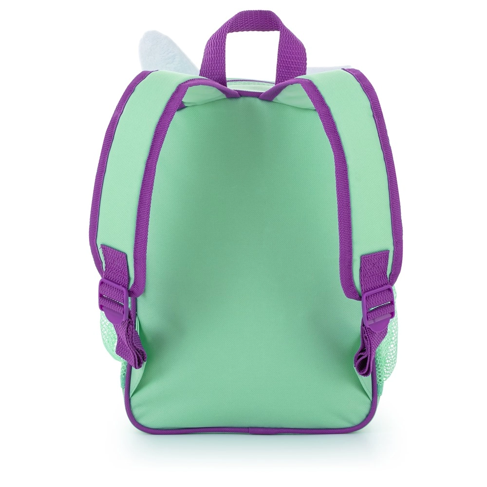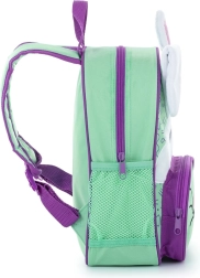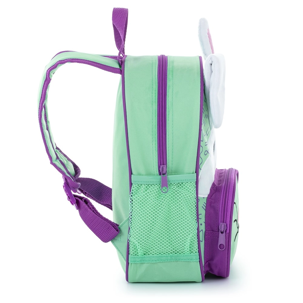 Praktična organizacija olakšava raspored: glavni pretinac za veće stvari, prednji pretinac za užinu te bočni mrežasti džepovi za bocu s pićem. Podesive naramenice i meka podstava doprinose udobnosti pri svakodnevnom nošenju, dok razigrani zečji motiv potiče dječju maštu.