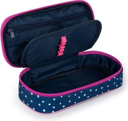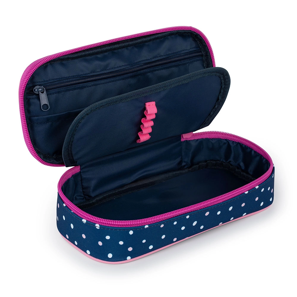 Ispod preklopa nalazi se prostor za slobodno odlaganje sitnica i pribora te s obje strane čvrsti držači za flomastere, olovke ili markere. Zatvorivi unutarnji džep na patentni zatvarač sigurno čuva manje predmete, poput gumica, šiljila ili ključeva.