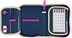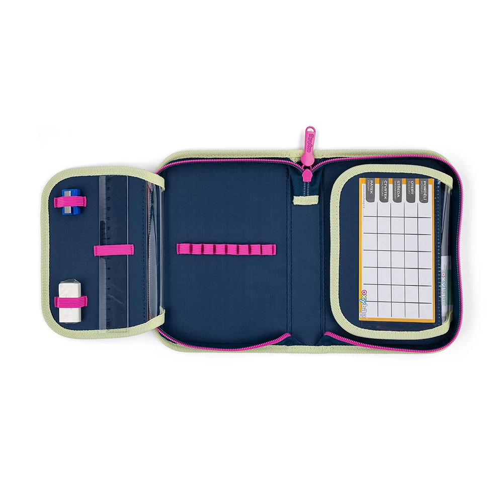 Jednokatna pernica s dvama unutarnjim preklopima pruža izvrsnu organizaciju školskog pribora. Zahvaljujući 25 elastičnim trakama olovke, kemijske, gumica i ravnalo uvijek će biti na svom mjestu. Prozirne folije na preklopima idealne su za raspored sati ili bilješke.