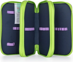 Pernica je opremljena s 40 elastičnih petlji za olovke, kemijske, bojice i sitan školski pribor. Zahvaljujući čvrstom patentnom zatvaraču s velikim vučnicima lako se otvara i zatvara, a prozirni pretinac za tjedni raspored olakšava organizaciju školskog tjedna.