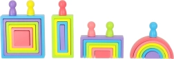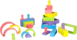 Šareni drveni dijelovi motiviraju djecu na gradnju mostova, tornjeva i dužnih kompozicija. Potiču maštu i samostalno otkrivanje zahvaljujući otvorenom načinu igre.
