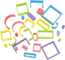 Raznoliki oblici i veličine pomažu djeci lako razlikovati boje i geometrijske forme. Idealno za prvo brojanje, razvrstavanje i uspoređivanje.