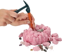 U ružičastom gipsanom bloku pronaći ćete 18 pravih kamenova. Uz pomoć kladiva i dlijeta sigurno ćete ih iskopati, očistiti kistom i proučiti lupom.