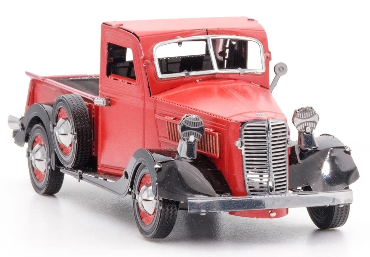 Doživite radost sastavljanja ikoničnog vozila FORD pick-up iz 1937. Od para kvadratnih čeličnih pločica 11 × 11 cm postupno ćete složiti realističan metalni model s bogatim laserskim graviranjem. Dijelovi se povezuju pametnim zasunima savijanjem jezičaka, tako da ne trebate ljepilo niti lemljenje. Gotov model mjeri približno 9 × 4 × 3,5 cm i odlično će se istaknuti u svakoj kolekciji.
