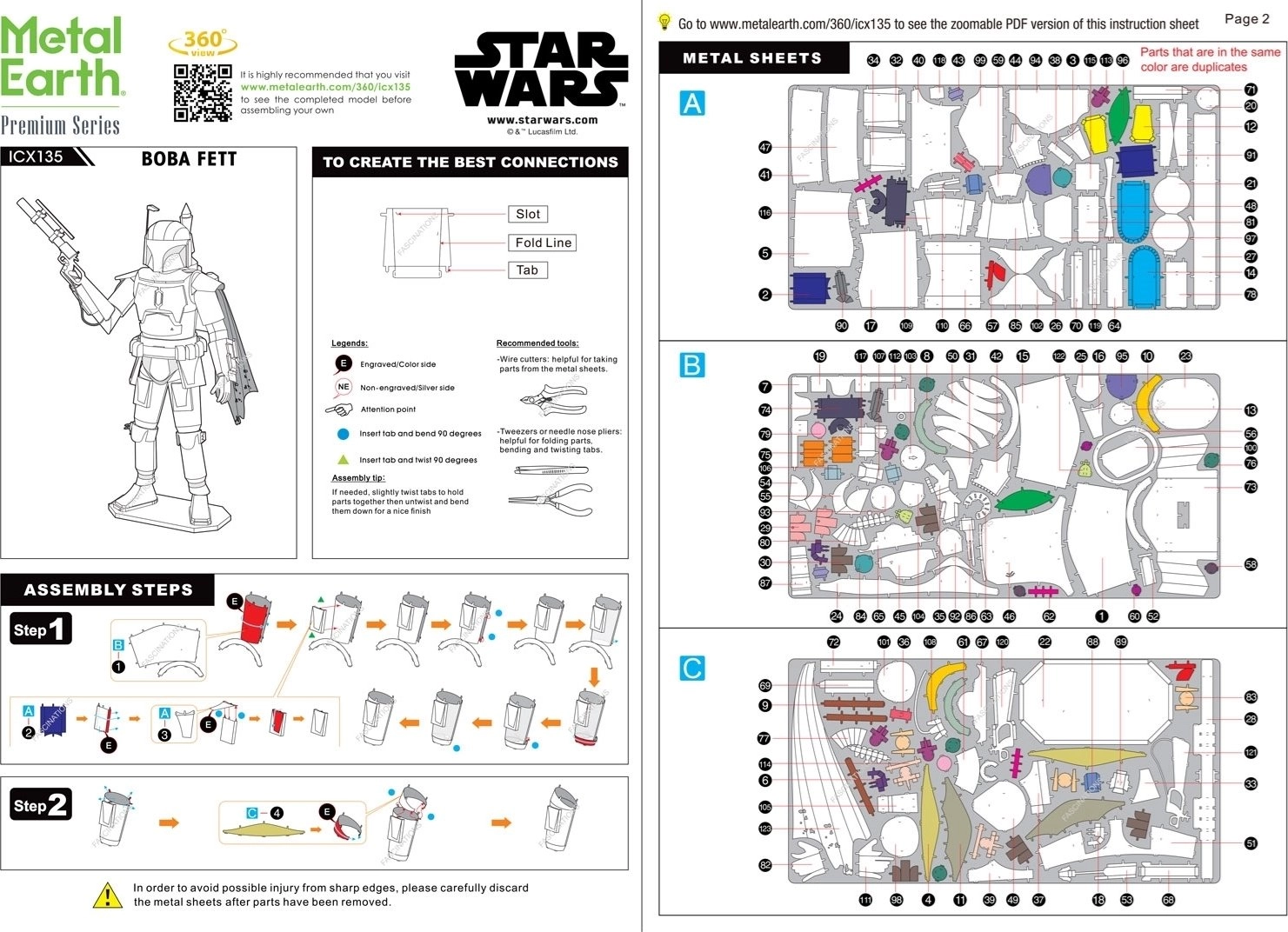 Uzbudljiv izazov, doživljaj pri sastavljanju i blistav rezultat – to su METAL EARTH modeli! Model iz premium linije Star Wars ICONX u ekskluzivnom poklon-pakiranju očarat će vas još savršenijom razradom detalja! Sastavljanje 3D puzzli METAL EARTH ICONX zahtijeva strpljenje i spretne ruke. Ipak, rezultat u potpunosti nadmašuje uloženi trud! Minijaturne replike posebno su dojmljiva i privlačna dekoracija ne samo kod kuće, već i u uredu ili školi. Iz pravokutnih čeličnih pločica s dijelovima svjetskih znamenitosti, slavnih prijevoznih sredstava, glazbenih instrumenata ili životinja pod vašim će rukama nastati detaljno razrađeni, fascinantni modeli. Autentičan izgled 3D puzzli METAL EARTH ICONX postignut je zahvaljujući detaljnom laserskom graviranju. Pakiranje sadrži 3 čelične pločice s unaprijed izrezanim dijelovima, pincetu i upute za sastavljanje. Alat – kliješta nisu dio pakiranja. RADNI POSTUPAK: Pojedine dijelove izvadite iz metalnih pločica; po potrebi upotrijebite male rezače žice/štipačice (nisu uključeni). Dijelovi se spajaju pomoću zasuna koji se sastoje od jezičca i otvora. Jezičac savijte malim tankim kliještima (nisu uključena) i postupno spojite sve zasune dok ne dobijete vrlo realističan majstorski uradak! Preporučena dob: od 14 godina. Dimenzije sastavljene puzzle cca 10,41 x 8,13 x 18,29 cm