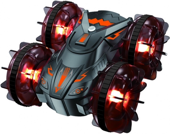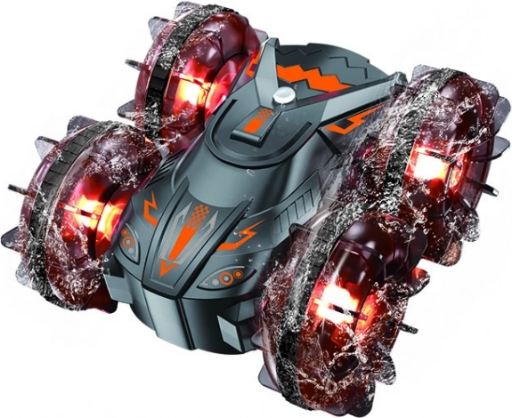 Doživite vožnju po kopnu i na vodi s RC autom koji savladava sve smjerove, stuntove i okrete nakon udarca, a zahvaljujući LED kotačima uočljiv je i u sumrak. Uživajte u do 25 minuta vožnje na jedno punjenje i stabilnom upravljanju s dohvatom do 40 m.