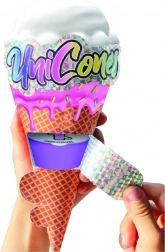 UNICONES je razigrani kornet pun radosti – raspakiravaj dio po dio i otkrivaj što se krije unutra. Svaki kornet uključuje preslatkog jednoroga, set dodataka za personalizaciju i porciju sluzi za kreativnu igru. Zahvaljujući izmjenjivim elementima dijete može figuricu ukrašavati i uvijek iznova kombinirati dodatke prema raspoloženju.