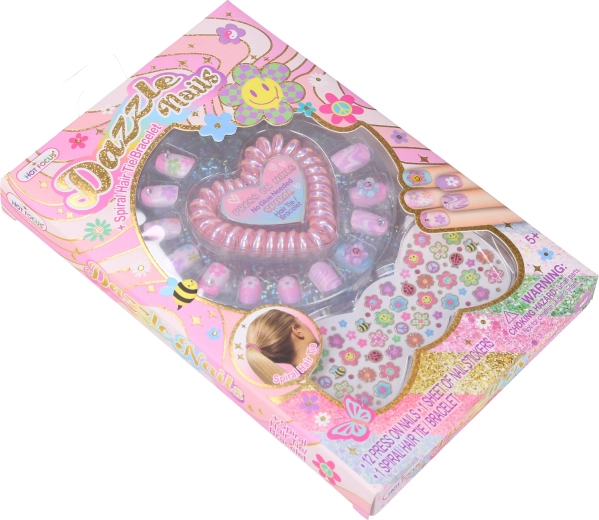 Naljepci za nokte s naljepnicama - cvjetići. Sadrži naljepke za nokte, naljepnice i gumicu za kosu. Nokti nakon pritiska drže, nije potrebno ljepilo.