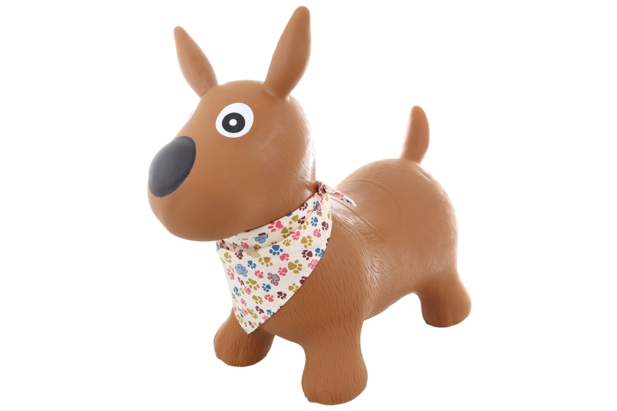 Gumeno skakutalo psić s maramom veličine cca 54 × 47 × 25 cm. Visina sjedala cca 24 cm. Dimenzije pakiranja cca 32,5 × 20 × 15 cm. Maksimalna nosivost je 50 kg. U pakiranju je uključena pumpica. Dob 1+