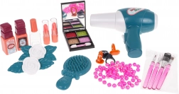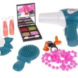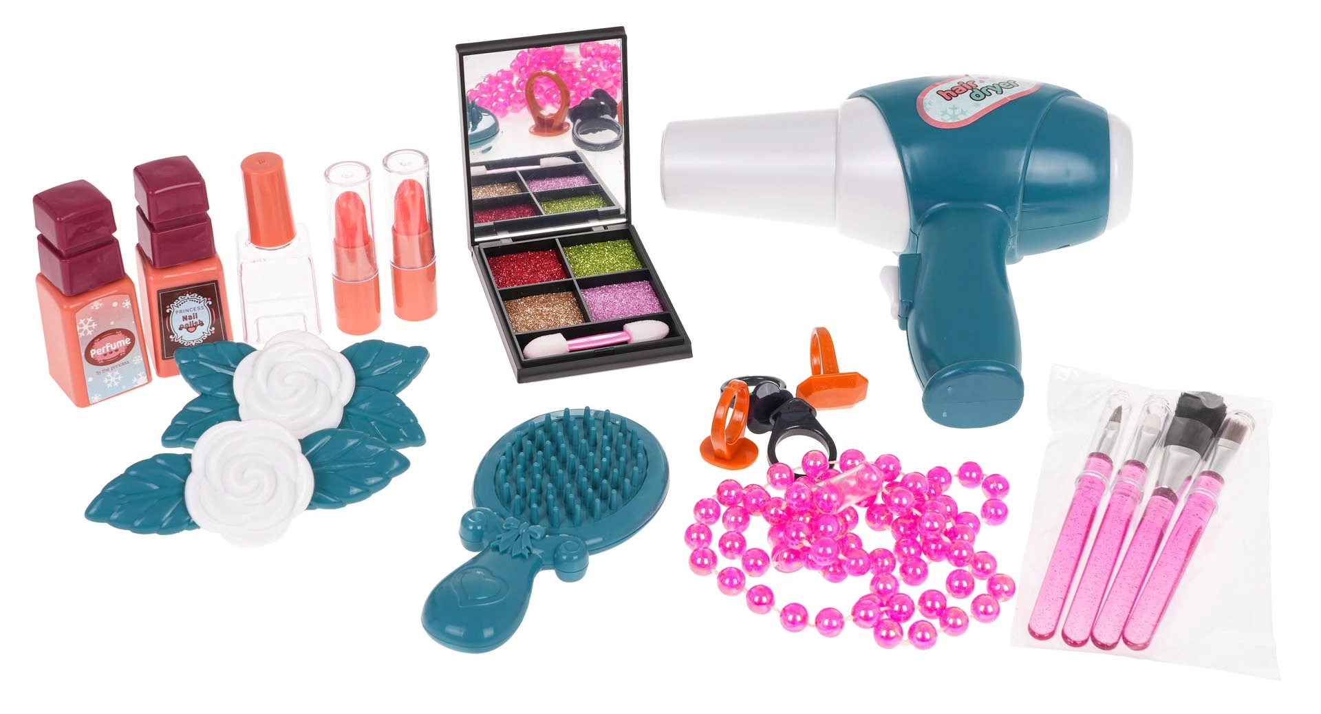 - toaletni stolić, .- tabure, .- sušilo, .- perlice, .- narukvica, .- 2 x atrapa ruža za usne, .- atrapa laka za nokte, .- atrapa parfema, .- posudica za kozmetiku, .- 2 x ukosnica, .- četka za kosu, .- 4 x prsten, .- kozmetična torbica s ogledalcem, kistom i figuricom sjenila, - 4 x kist za šminkanje, . |