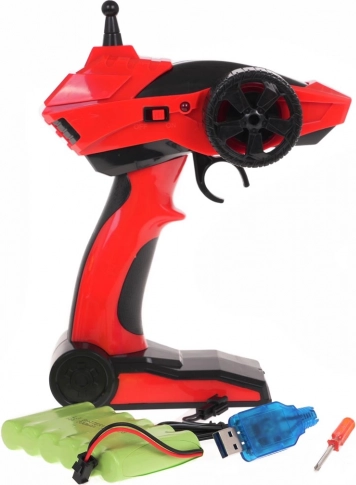 Ergonomski predajnik 2,4 GHz, akumulator 700 mAh 7,2 V i USB punjač u pakiranju – dovoljno je umetnuti 2× AA u upravljač i krenuti.