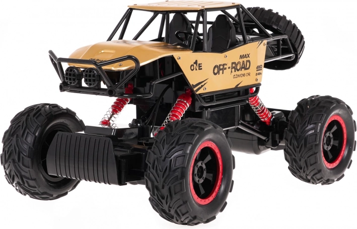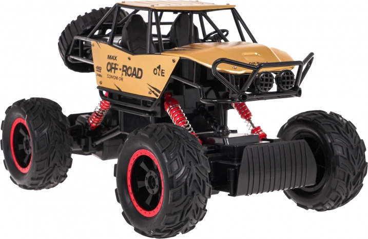 Crawler One Max robustan je RC crawler namijenjen djeci od 6 godina i razigranim odraslima. Njegova metalna karoserija i čvrsta konstrukcija s protukolizijskim rješenjem podnose oštre terenske vožnje, dok visoki opružni ovjes i velike gume osiguravaju siguran prolaz pijeskom, šljunkom i travnatim dionicama.