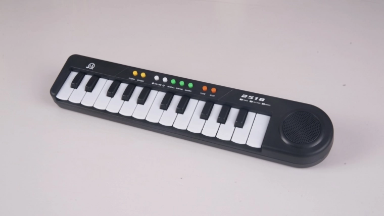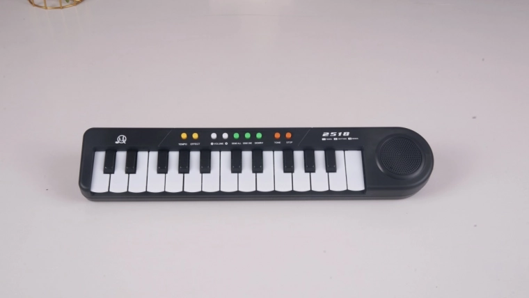 Poticajte dječju kreativnost i osjećaj za ritam s laganim i prijenosnim klavirom MQ-2518. Ovaj jednostavan, ali funkcionalan instrument odličan je izbor za početnike: nudi izbor tonova, osam ritmova i 24 demo skladbe koje motiviraju djecu na istraživanje glazbe.