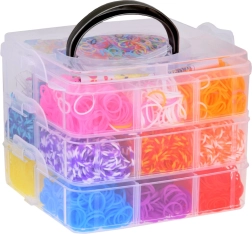 Otkrijte svijet stvaranja uz set za narukvice od gumica s bogatom opremom i do 4500 komada u 15 boja. Praktičan transparentan organizator, kukice, praćke, razboj i šarene perlice omogućuju djeci i odraslima izradu originalnih narukvica, ogrlica i privjesaka. Sjajna zabava koja razvija kreativnost i finu motoriku.