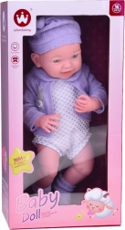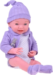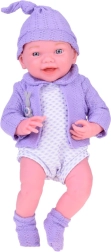 Preslatka beba lutka visine 40 cm razveselit će svako dijete realističnim izgledom i ugodnim dodirom. Ima pokretne udove, detaljno lice i odjevena je u ljubičasti džemperić s kapicom, body i meke čarapice. Izvrsna za igru njege, razvoj empatije i mašte.