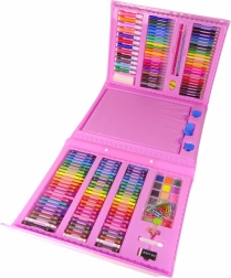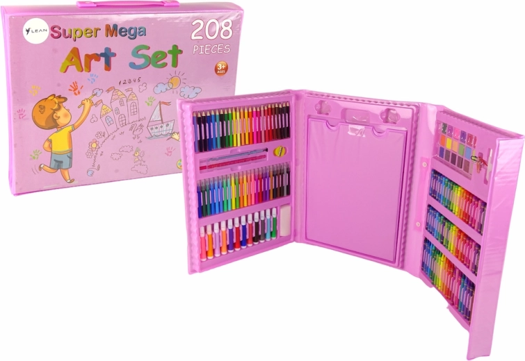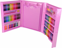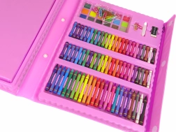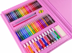 Ovaj ružičasti likovni koferić nudi bogat izbor alata za male umjetnike: flomastere, bojice, voštane pastele, uljne pastele, akvarelne boje i praktična pomagala. Zahvaljujući preglednoj organizaciji dijete ima sve pri ruci i može se u potpunosti usredotočiti na stvaranje.