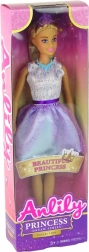 Otkrijte šarm lutke Anlily u bajkovitom princeza-stilu. Njezina bogata, blago valovita plava kosa poziva na stvaranje novih frizura. Haljinu s bijelim korzetom i ljubičasto‑plavom suknjom upotpunjuju sjajna kruna, ogrlica i visoke cipelice – sve savršeno usklađeno za kraljevski izgled.