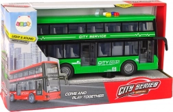 Ovaj detaljno izrađen gradski autobus razveselit će male vozače i ljubitelje javnog prijevoza. Na krovu se nalaze 4 tipke koje aktiviraju trubu, zvuk vožnje unatrag i druge prometne efekte. Unutarnja LED rasvjeta mijenja boje na crvenu, zelenu i plavu, što pojačava atmosferu tijekom igre.