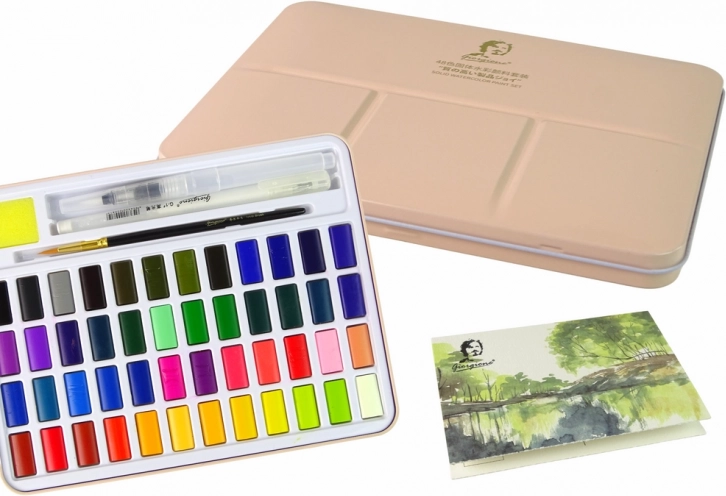 Set za umjetnike s 48 akvarelnih boja i priborom