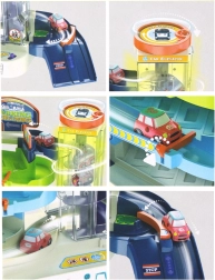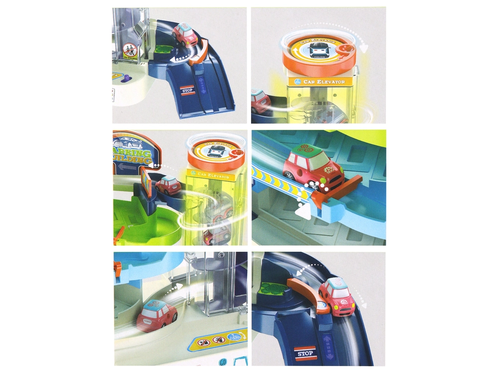 Svaka razina garaže nudi četiri parkirna mjesta na koja djeca mogu s lakoćom parkirati priložene autiće. Jedinstveni element je dizalo koje omogućuje premještanje automobila između razina. Nakon izlaska iz dizala, autići se automatski spuštaju niz stazu, što stvara dinamičniju i uzbudljiviju igru.