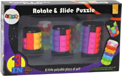 Upoznajte set od tri logičke zagonetke u obliku cilindra, koje će pružiti sate zabave i mentalnih izazova. Određivanje boja u jednom redu putem rotacije prstena i pomicanja obojenih kocki bit će vaša verzija radosti.