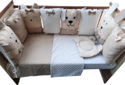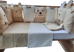 - 8-dijelni, dužina 240 cm (4 dijela: pamuk, 4 dijela: pamuk+minky poliester, punjenje: poliester)