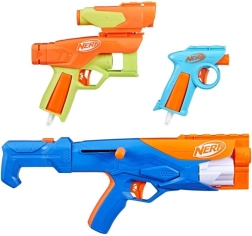 Set uključuje tri različita blastera u glavnim bojama plave i narančaste, koji nude različite stilove igre.