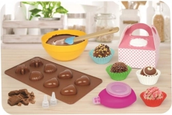 Sadrži zdjelice, spatule i kalupe koji su potrebni djeci za izradu čokoladnih poslastica.