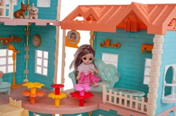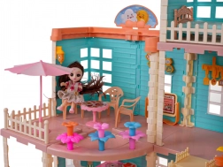 U setu ćete pronaći kompletnu opremu uključujući 3 lutke s dugom kosom pogodnom za češljanje, namještaj i vanjske dodatke kao što su ljuljačka, suncobran i čak stol za ping‑pong. Kućica je izrađena od kvalitetne plastike u živim bojama koje privlače pogled na prvi pogled.