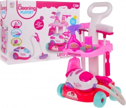 Ovaj dječji set za čišćenje nudi sve što mali domaćini trebaju: stabilna kolica na kotačima s dvije police, interaktivni usisavač sa svjetlosnim i zvučnim efektima te širok raspon dodataka. Zahvaljujući sigurnoj izvedbi od izdržljive plastike i privlačnim bojama, djeca će zavoljeti oponašanje pravog čišćenja i pritom učiti održavati red.