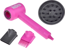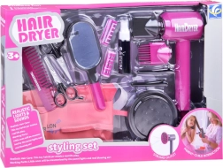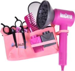 Dio seta je dječje sušilo na baterije s izmjenjivim nastavcima za različite stilove, škare, češalj, ogledalce, kopče, vikleri i raspršivač – sve u nježnom ružičastom dizajnu za maksimalno zadovoljstvo u igri. Odlična ideja za poklon za svaku malu frizerku.
