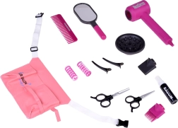 Ovaj ružičasti frizerski set idealan je za male ljubitelje frizura. Zahvaljujući bogatoj opremi djeca mogu sigurno oponašati rad frizera, isprobavati nove frizure i njegovati kosu lutaka i članova obitelji. Lagani materijal i pregledno spremanje u tekstilnom organizatoru osiguravaju udobno nošenje i brz pristup svim alatima.