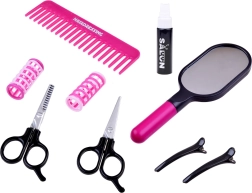 Škare, češalj, ogledalce, kopče, vikleri i bočica s raspršivačem – sve u ružičastom dizajnu za maksimalnu zabavu.
