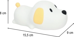 Silikonska noćna lampa u obliku psa idealan je dodatak dječjoj sobi, koji svojim nježnim svjetlom pruža osjećaj sigurnosti. Zahvaljujući mekom silikonu, lampa je sigurna za djecu koja je mogu dodirivati, stišćati ili grliti. Lampa nudi dva načina svjetla: toplo bijelo i hladno bijelo, što omogućuje prilagodbu osvjetljenja prema potrebama djeteta. Svjetlina se može lako regulirati držanjem nosa psa.