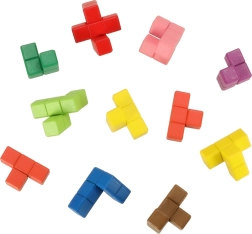 Edukativna drvena slagalica je dizajnirana kako bi podržala kreativnu igru i razvijala logičko razmišljanje i spretnost. Uključuje 11 kocaka različitih oblika i boja, koje djeca moraju precizno prilagoditi osnovi, što stimulira njihovu koncentraciju i koordinaciju oko-ruka. Sadrži knjigu sa 74 zadatka, koja nudi razne izazove, i omogućuje djeci neprestano usavršavanje svojih vještina. S tri razine težine ova slagalica se prilagođava uzrastu i sposobnostima djeteta, pružajući neprestane izazove na svakoj razini razvoja.